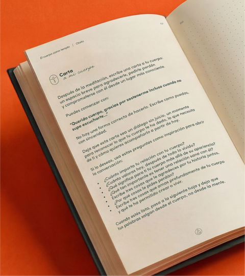 Además de los espacios de escritura, encontrarás códigos QR que te llevan a meditaciones guiadas y audios creados por Camila y Mariana, para que la experiencia sea profunda y sensorial.